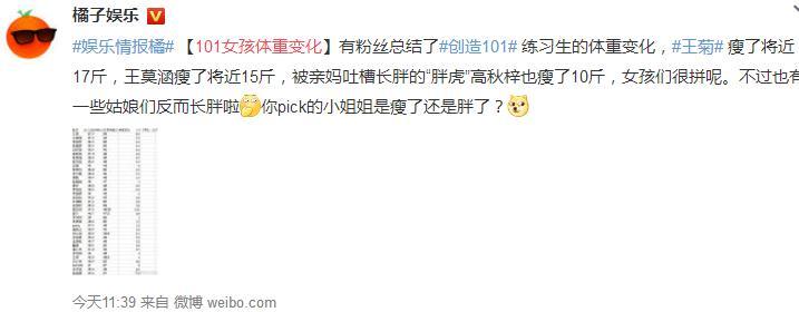 明星网资讯,近日,有部分营销号曝光了创造101女孩体重变化,在网络上引起了不小的热议。