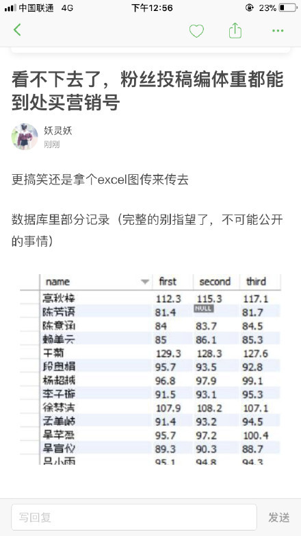 7,这张表。。。。。假的有点明显。。。。杨超越169的大高个43那是啥骷髅吗?这么假也有人信?