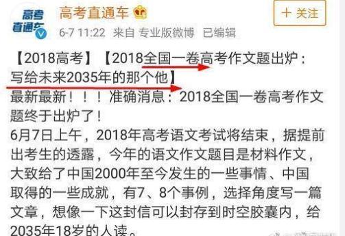 据了解,有媒体报道:易烊千玺押中了2018年高考全国一卷的高考作文,作文题目是:写给2035的那个他。